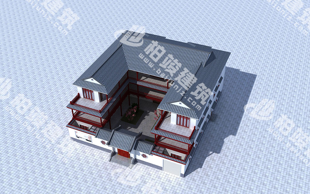 一進(jìn)三層新古典風(fēng)格四合院設(shè)計(jì)圖,13室7廳12衛(wèi),帶電梯、車庫