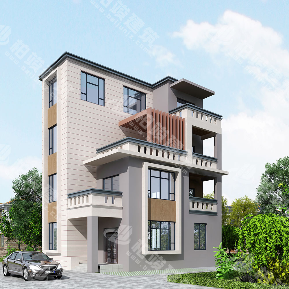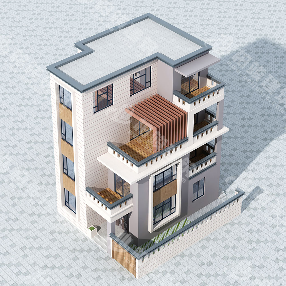 屋頂造型:大塊地磚鋪設(shè)平屋頂,設(shè)置女兒墻裝飾立面,大氣美觀